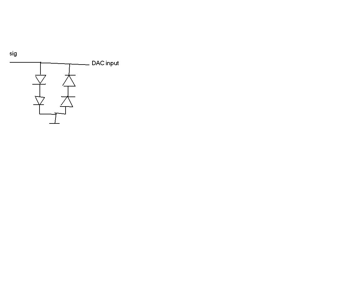 an naja! Man sollte vielleicht Antworten geben, die hilfreich sind. Deine Schaltung mit den 4 Dioden wird nicht sehr zielführend sein. Du kriegst nur Spannungen zwischen +1.4 und -1.4 an den ADC. Du kannst es so machen wie im Anhang. Wenn Dein ADC sicher nicht mehr verträgt als -0.3V brauchst Du die D1, ansonsten kannst Du sie weglassen. Grüsse