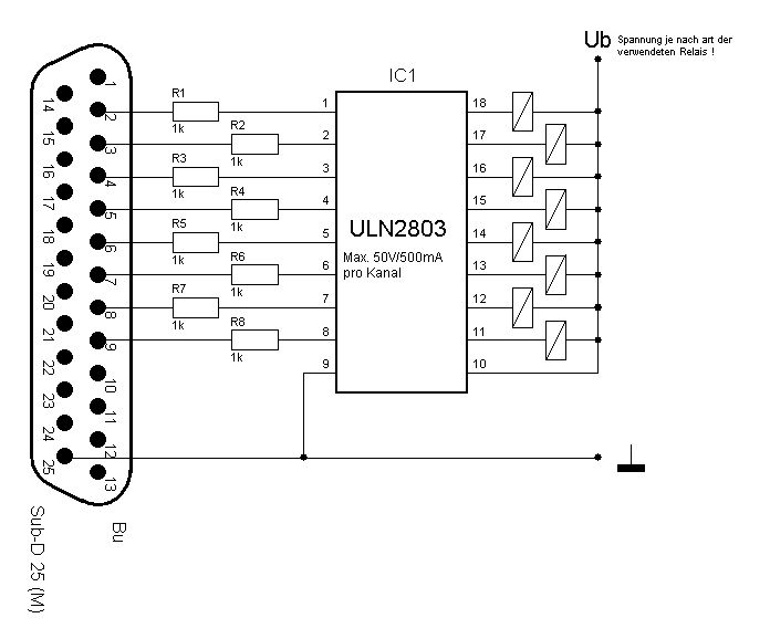 Hatten wir zwar schon aber bitteschön: ULN2803 Beispielschaltung im anhang (Denk dir statt Parport nen Controller) Datenblatt gibbet bei Google. Fertig