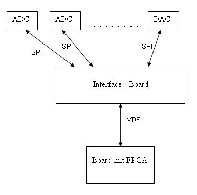 > Warum schließt du die SPI-ICs nicht direkt an das FPGA an? Meine Sache ist nur das Interface-Board. Alles andere ist nicht von mir entwickelt. Das Konzept wurde mir vorgegeben. Das FPGA Board ist vereinfacht dargestellt. In der Tat ist das ein Board mit zusätzlich einem DSP und noch einigem mehr. Das FPGA darauf hat schon genug andere Sachen zu tun. Darum wurde nur eine Schnittstelle vorgesehen (evtl. auch SPI aber eine genügend schnelle, damit die "serialisierten" Daten von allen SPI-ICs in Echtzeit sozusagen angenommen werden. Die einzelnen SPI-ICs sind aber relativ langsam (1-5MBit/s) darum sollen sie gleichzeitig und nicht nacheinander angesprochen werden. Die LVDS-Verbindung geht über ein paar Stecker und ein Stück Backplane-Board, ich schätze 10-20cm insgesamt. Soll aber sicher sein, trotz höherer Datenrate (evtl. bis 40 MBit/s), darum differentiell. Es liegt aber noch nicht entgültig fest mit dem LVDS.