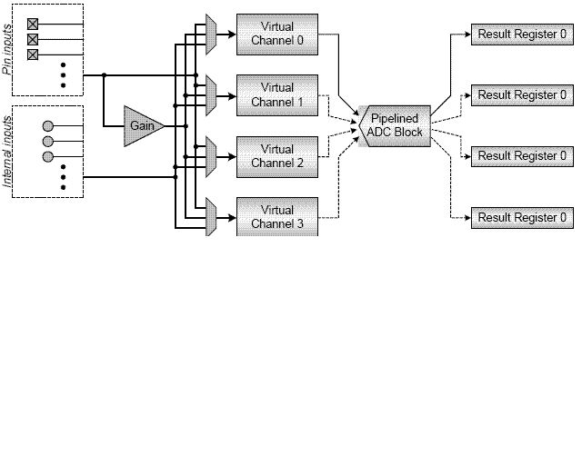 Für die Kanäle 0...3 gibt es die Register ADCB.CH1...3.CTRL und