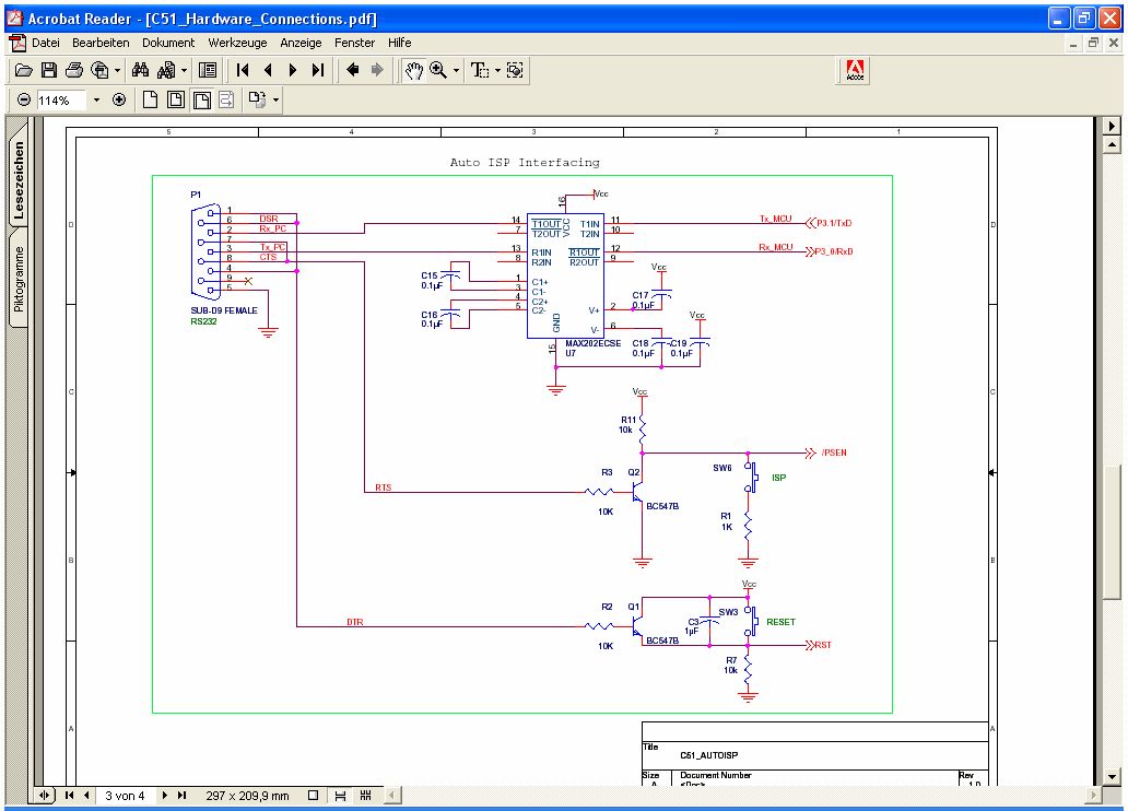 Ich habe den RC2 nach auto isp beschalten, wie das atmel vorschlägt (siehe anhang). EA hab ich mit drahtbrücke auf Vcc. Ein paar sachen sind jedoch komisch: - PSEN lässt sich über den transistor gut auf gnd ziehen, per taster verringert sich die spannung jedoch nur minimal. Der pin scheint sehr viel strom liefern zu können, was komisch ist, zumal das bei den anderen portpins nicht so ist. Die kann ich mit einem 1K auf Masse ziehen. - rst hat im normalzustand -0,4 V Das liegt noch im Low Bereich, ist aber auch setsam. - Der port 0 hat O V an den pins, der wird aber doch nach dem reset auf 1 gelegt!? Ist der Chip etwa schon hinüber? Wüsste nicht, warum. Vielen Dank für dein Interesse Grüße, Andreas