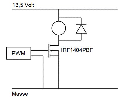 Guten Tag, für ein Projekt möchte ich eine Motorsteuerung per PWM realisieren. Zuvor habe ich mich informiert - im Anschluss daran Teile gekauft. Leider funktioniert die Steuerung nicht so wie gedacht. Aufgebaut ist die Steuerung nach dem Prinzip "Mosfet mit Freilaufdiode - 1Quadrantensteller" (zu sehen hier: http://tinyurl.com/36e5lhx ). Bei dem Aufbau habe ich den Kondensator jedoch weggelassen. Der Motor hat eine Spannung von 13,5V PWM-Signal liegt vor mit einer Frequenz von 300Hz und zwischen 0 und +10 Volt. Als Mosfet habe ich einen IRF1404PBF von National Rectifier verwendet (Datenblatt als PDF hier: http://tinyurl.com/3639dyv) Nachdem ich alles aufgebaut habe, beginnt der Motor schon zu laufen, wenn das Tastverhältnis des PWM-Signals gleich Null ist (bzw. dieses ganz ausgeschaltet ist). Ändere ich das Tastverhältnis, so ändert sich auch die Geschwindigkeit des Motors - jedoch erreicht sie nicht die maximale Drehzahl. Die Spannung die ich gemessen habe beträgt maximal 7,5 Volt anstatt der angelegten 13,5 Volt. Auch wenn die Spannung erhöht wird (z.B auf 16 Volt) bleibt die gemessene Spannung immer bei 7,5 Volt. Woran könnte es liegen, dass der Motor schon anläuft, wenn die Gatespannung 0 ist? Und warum bekomme ich nicht die angelegte Spannung, sondern immer eine Spannung von 7,5 Volt? Über eine kleine Hilfestellung würde ich mich sehr freuen. mit freundlichen Grüßen, Michael Post