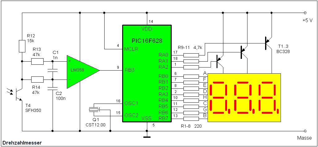 Hall an alle, Ich habe folgene Schaltung zur Drehzahlmessung im Netz gefunden: http://www.sprut.de/electronic/pic/projekte/dehzahl/dreh.htm Diese Schaltung brauch e ich zur Drehzahlmessung eine Welle eines Generators. Kann ich einfach anstelle von T4 SFH350 in der Schaltung durch CNY70 ersetzen? alles andere bleibt nur die beiden Elemnete austauschen?. MfG