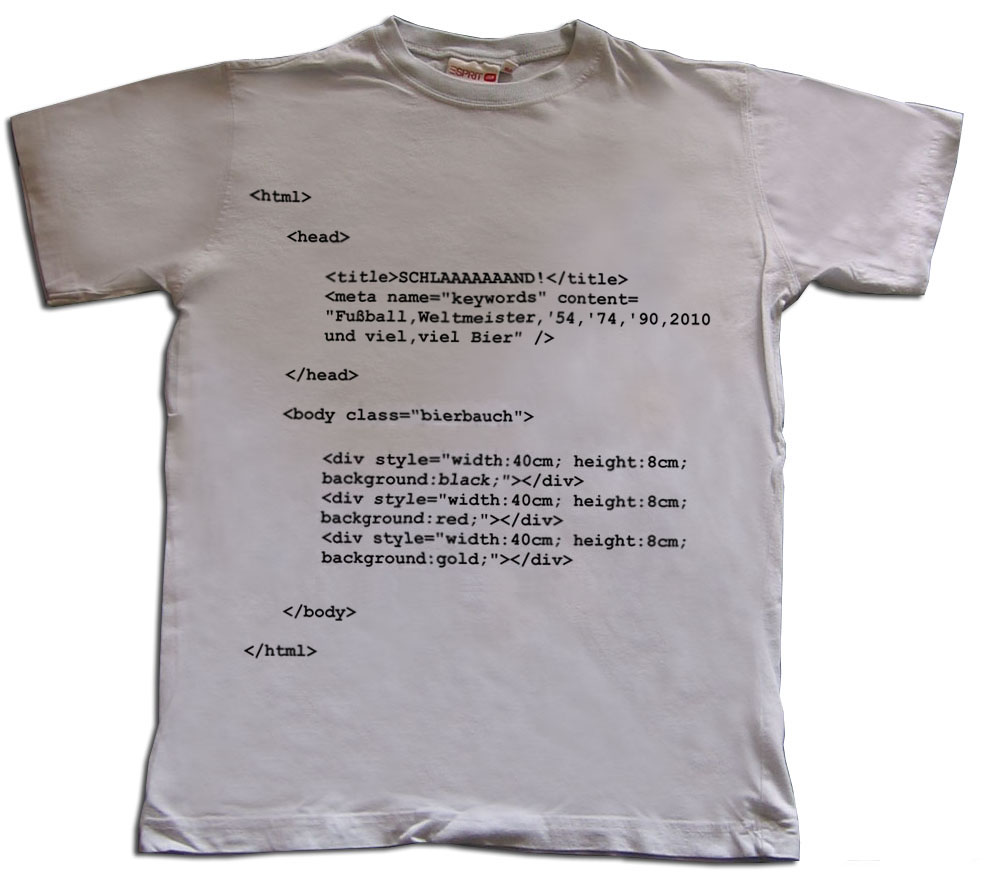 Hallo, ich habe in den Tiefen des Netz dieses Fußballtrikot für Nerds gefunden. Ist das HTML-technisch so richtig? Versteht HTML z.B. 40cm ?