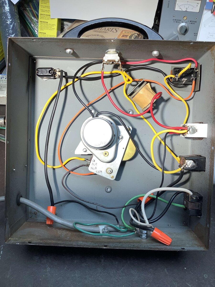 Moin, falls es interessiert: der Timer für meinen Vergrößerungsapparat ist ein vorhandener umgebauter 120VAC/60Hz Gralab 171 motorisierter Universal Timer. Der Zweck des Umbaus war die Funktionalität des Gralab 300 Darkroom Timer Models zu erzielen. Die zugehörige Schaltung habe ich bildlich von einem YT Reparatur Video extrahiert und neu gezeichnet. Das umgebaute Gerät entspricht nun der Beschreibung der Firma. Gerhard