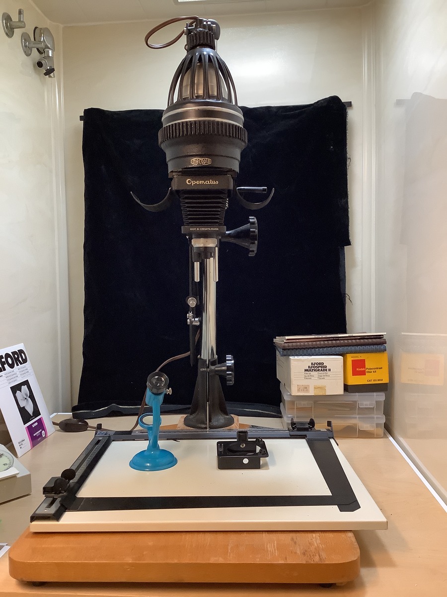 Gerhard O. schrieb: > (...) Ich hatte gewisse > Bedenken, daß das reflektierte Licht von den Wänden das Fotopapier > verschleiern könnte. Ob das wirklich ein Problem ist, könnten nur > Untersuchungen bestätigen, aber Vorsicht schadet nie. Ja, das ist ein Problem. Das gibt lustige graue Fahnen im Bild. Mit dieser Unterlage mit den Schiebern konnte ich mich nie anfreunden. Ich hatte eine grau pulverbeschichtete Metallplatte auf dem Grundbrett und dann vier rechteckige Magnete als Papieranschlag. Die Alnico-Magnete hatten an den Seiten schwarze Schlacke vom Sintern. Silberne Magnete hätte man schwarz anmalen oder bekleben müssen, sonst gibt es wieder Streulicht-Reflektionen.