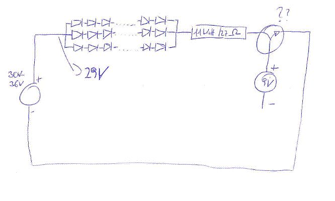 Hallo ! Also ich bin gerade in meinem ersten Schaltprojekt und eigentlich schon relativ weit. Ich habe eine Platine mit CMOS ICs zusammengelötet, wo ich mit 2 Tasten eine 7 Segmentanzeige rauf und runter zählen kann. Das wird mal meine Anzeigentafelsteuerung. Die Platine hat ganz kleine Anzeigen zum testen drauf und funktioniert schonmal mit einer 9V-Batterie. Aus China hab ich mir eine riesige 7 Segmentanzeige gekauft, wo pro Segment 15 Leds in Serie und das 6x parallel geschaltet ist. Also hat ein kleines Segment 90 LEDS. Danach hab ich einen 11Watt/27 Ohm Widerstand gesetzt, damit ich einen passenden Vorwiderstand hab. Das Netzteil hat einen Poti, mit den ich die laut Datenblatt der großen Anzeige benötigten 29V Typical nach dem Widerstand gemessen habe. Laut Datenblatt der Anzeige benötigt ein Segment in etwa 180mA. Das ganze Ding leuchtet schonmal :-) Juhu... Jetzt will ich mit 7 Transistoren die Ausgänge des BCD Wandlers der 9V Platine als Basis nutzen und damit die 29V Leitung der Anzeige auf und zu machen, sodass quasi die 9V Platine die 29V Anzeige steuert. Bei Conrad wurde mir der TIP 122 verkauft (und noch ein ähnlicher BD irgendwas). Mit denen funktioniert das aber irgendwie nicht. Der TIP 122 funktioniert zwar wenn ich eine 9V schalten möchte (getestet mit einer LED) und beim Schalter habe ich auch 9V und 5k Ohm davor eingebaut, damit ich seh ob eh der Collector der eigentliche Stromgeber ist und nicht die Basis. Könnt ihr mir sagen, welcher der richtige für mich ist ???? PS: Ist mein erster Projekt und ich bin absoluter Schaltungsneuling, also bitte verzeiht wenn ich mich wo falsch ausgedrückt habe .... Lg Christian