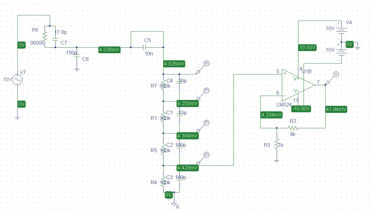 Hallo, der LM324 ist für AC-Verarbeitung nur sehr eingeschränkt zugebrauchen. Das Netzwerk aus C6,C7 und R6 ist ein Tiefpass mit -3dB bei 1kHz und -20dB bei ca.40kHz.