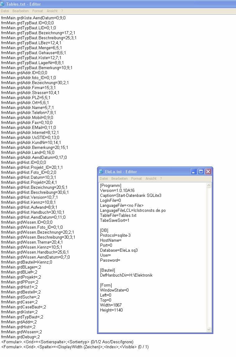 - Datenbank, INI und Hilfe-Datei sind in der EleLa_Start.zip