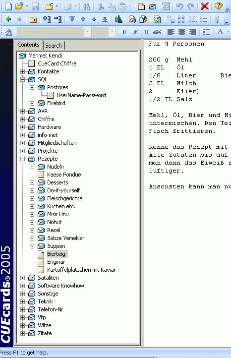 Wie wärs mit Verzeichnis "Notizen", Kontakte und "Termine" erstellen und mehrere Textdateien darin aufmachen. Oder meinst du eine richtige Organizer-Software