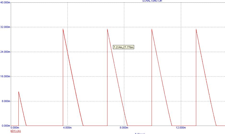Ja, die Diode im wiki ist meine LED. Den Kondensator hab ich nicht reingemacht, hat mir so jemand den Tip gegeben. Hab auch schon mit Kondensator und Diode simuliert, es kommt ungefähr dasselbe Ergebnis,nur der Stromimpuls ist abgerundet!