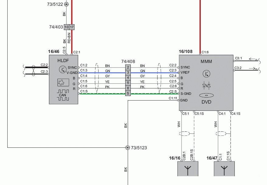 Hallo zusammen, hoffe sehr, dass ihr mir mit eurem Fachwissen weiterhelfen könnt! Ich möchte auf meinem werkseitig eingebauten Monitor ein externes Video-Signal einspielen. In meinem Fahrzeug wird das dreikanalige RGB-Signal zur Bildübermittlung verwendet. Hierfür habe ich mir einen Formatwandler gekauft, der das PAL-Signal in die RGB-Signale umwandeln soll. Des Weiteren habe ich mir den originalen Schaltplan (als Bild angehängt) besorgt, der die Pin-Belegung am Navi-Rechner (16/108) zeigt. Genau hier habe ich ein Problem: Die RGB-Signale sind klar. Auch das benötigte SYNC-Signal ist klar ersichtlich. Aber an welchen Anschluss liegt das GND (Masse)-Signal an? Ist es der Anschluss mit der blau oder grün markierten Strecke? Ich tippe auf V-GND! Aber was macht denn VREF da? An VREF liegt doch normalerweise Spannung an? Oder ist es der Leitungs-Schirm (S-GND), der evtl. als Masse-Leiter verwendet wird? Für viele von euch sicher kein Problem und alles ganz klar, aber ich tue mir nun etwas schwer. Im Voraus vielen Dank für eure Hilfe! Gruß alpa