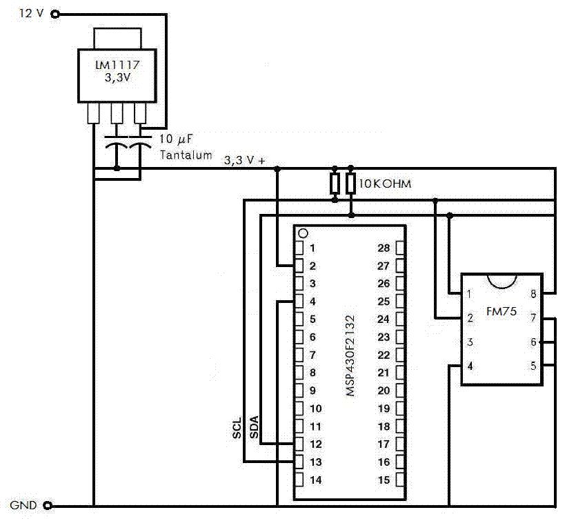 einen fm75 komplimentärtyp lm75 auszulesen und den wert zum einschalten