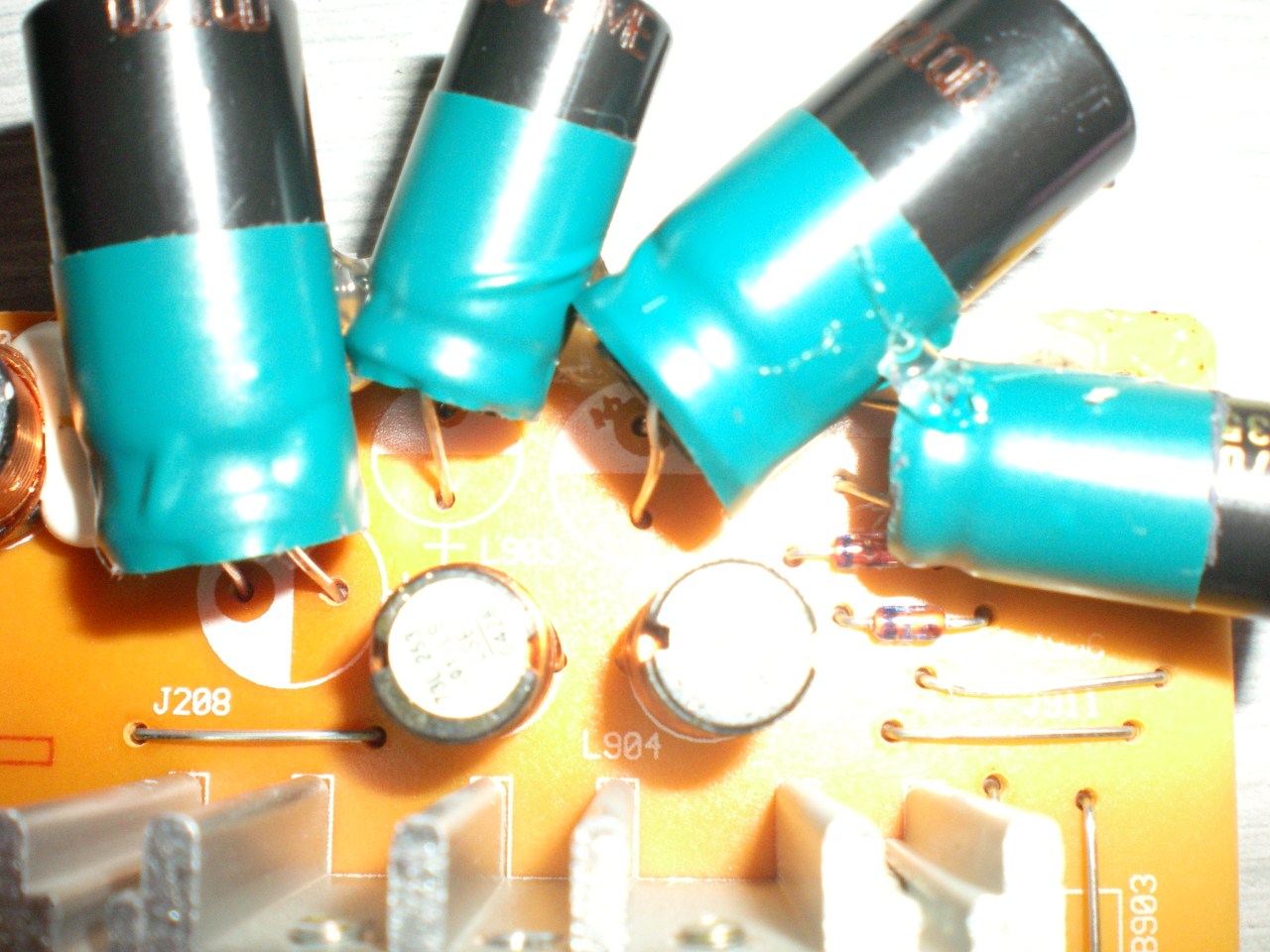 Ich habe mal eine Frage. In meinem TFT (Fujitsu Siemens 19" L9ZA, scheint wohl anfällig dafür zu sein..) sind auch vier Elekos kaputt, der Monitor es jedoch noch! Schalte ich die Bilderwiederholungsfrequenz auf 75Hz, so geht er aus (zuviel Stromgverbrauch?) Die Frage: WAS machen die Elkos im Monitor? Wofür sind die da? Allzu wichtig können die ja nicht sein, wenn bei mir vier von fünf (470µF, 35V) kaputt sind.