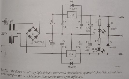 >Das ist die Schaltung zum Netzteil. >Ich möchte einen Trafo verwenden der Sec1:18Volt und Sec2:18Volt hat. >Was kann ich machen damit das funktioniert? Super-Troll! Mach es genau so, wie bei der Schaltung, wo liegt das Problem?