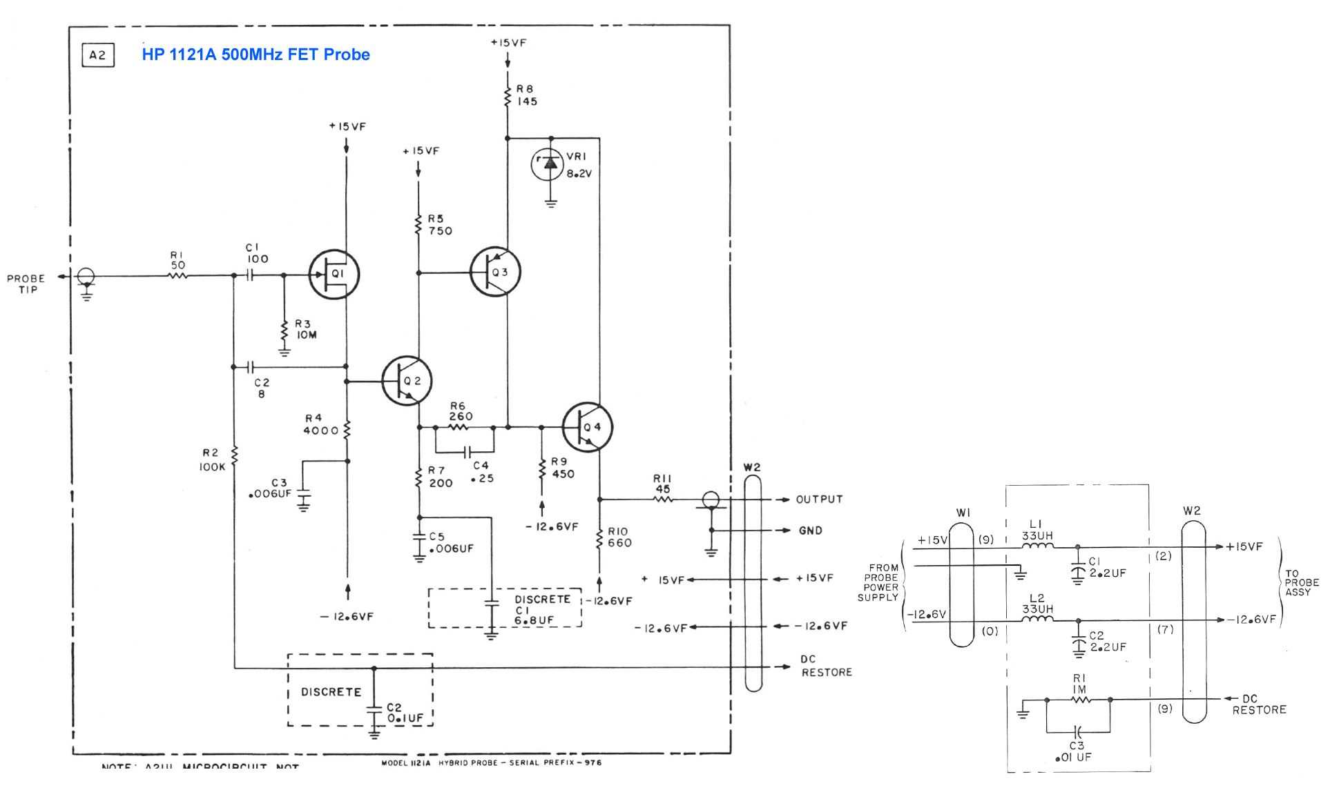 Die Schaltung von der HP 1121A Probe hatte ich gestern noch vergessen. Den Trick mit dem Input C Bootstrapping wollte ich bei Gelegenheit auch nochmal ausprobieren. Durch das Verwendete Steckersystem und den BF256C kommen bei mir halt dann doch schon schnell ~ 2.5pF zusammen.