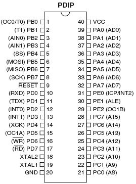Evtl. sollen noch weitere LEDs folgen, das ist aber gerade mein Problem, wo schließe ich diese an??? Ist es denn richtig, dass ich PB0 bis PB7 mit LEDs und PD0 bis PD7 mit Tastern versorgen kann??? aber was ist mit den Pins 21 - 39, wie können diese genutzt werden???
