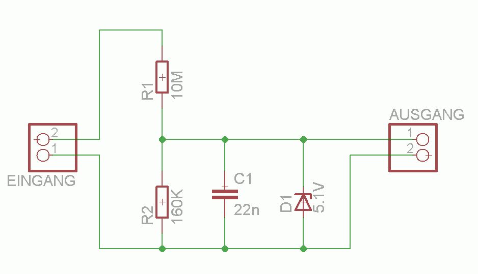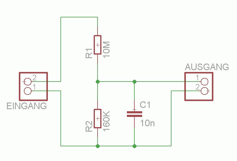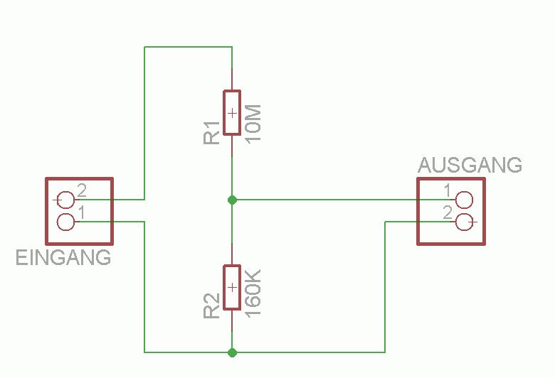 Ahh gut, also packe ich einen 10nF parallel dazu. Das mit der Limitierung der Bandbreite kann mir egal sein, da ich sowieso nur Gleichspannung an einer Kaltkathodenröhre messen will, die ändert sich erfahrungsgemäß fast gar nicht. Neue Version im Anhang. Was muss ich noch beachten? Danke schonmal für eure Hilfe! Lg Jens
