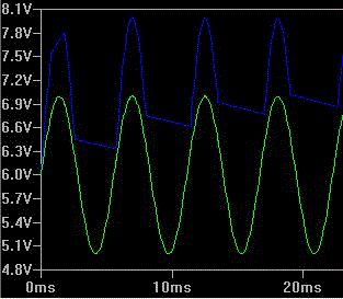 Hallo, Ich wollte einen Gegentakt Verstärker bauen und hab deshalb vorher die Schaltung mit LT Spice simuliert. Leider geht das Ausgangssignal mit Last nicht in den Negativen Bereich. Ohne Last funktioniert es makellos. Das die beiden Leistungstransistoren PNP sind ist Absicht, weil ich blöderweise PNP statt NPN bestellt hab. Ich denk aber nicht, dass das das Problem ist, denn wenn ich die Schaltung für NPN Transistoren simuliere hab ich das gleiche Resultat. Das ganze hängt an zwölf Volt. Ich hab ein Bild von der Schaltung und eins von der Spannung angehängt. Das grüne ist das Eingangssignal nach dem Entkopplungs-C und das blaue das Ausgangssignal. Es wäre nett wenn mir jemand sagen kann, wo mein Denkfehler liegt, bzw. was in der Schaltung falsch ist. Danke schon mal