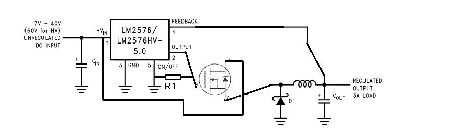 Hallo, kurz und knapp: Kann man den LM 2576 T12 auch mit nem externen Mosfet oder Transistor betreiben? Ich will von 24V auf 12V kommen bei ca. 2.5A Dabei werden laut Rechnung nahezu 2 Watt verheizt im Schaltregler, der dadurch ohne Kühlkörper unerlaubt heiß werden würde. Da ich das ganze klein und mit wenig Verlustleistung aufbauen will habe ich eine Idee: Bei manchen Schaltreglern habe ich bei den Application Notes etc. vorschläge mit externem Transistor gesehen. Wäre das hier auch möglich? Würde man hier vom Ausgang des Reglers direkt aufs Mosfetgate gehen? Am besten noch nen Pulldown von ca. 1KOhm auf GND dazwischen oder? Würde damit die Verlustleistung etwas zurückgehen? Oder ist da ein Denkfehler drin? Danke!