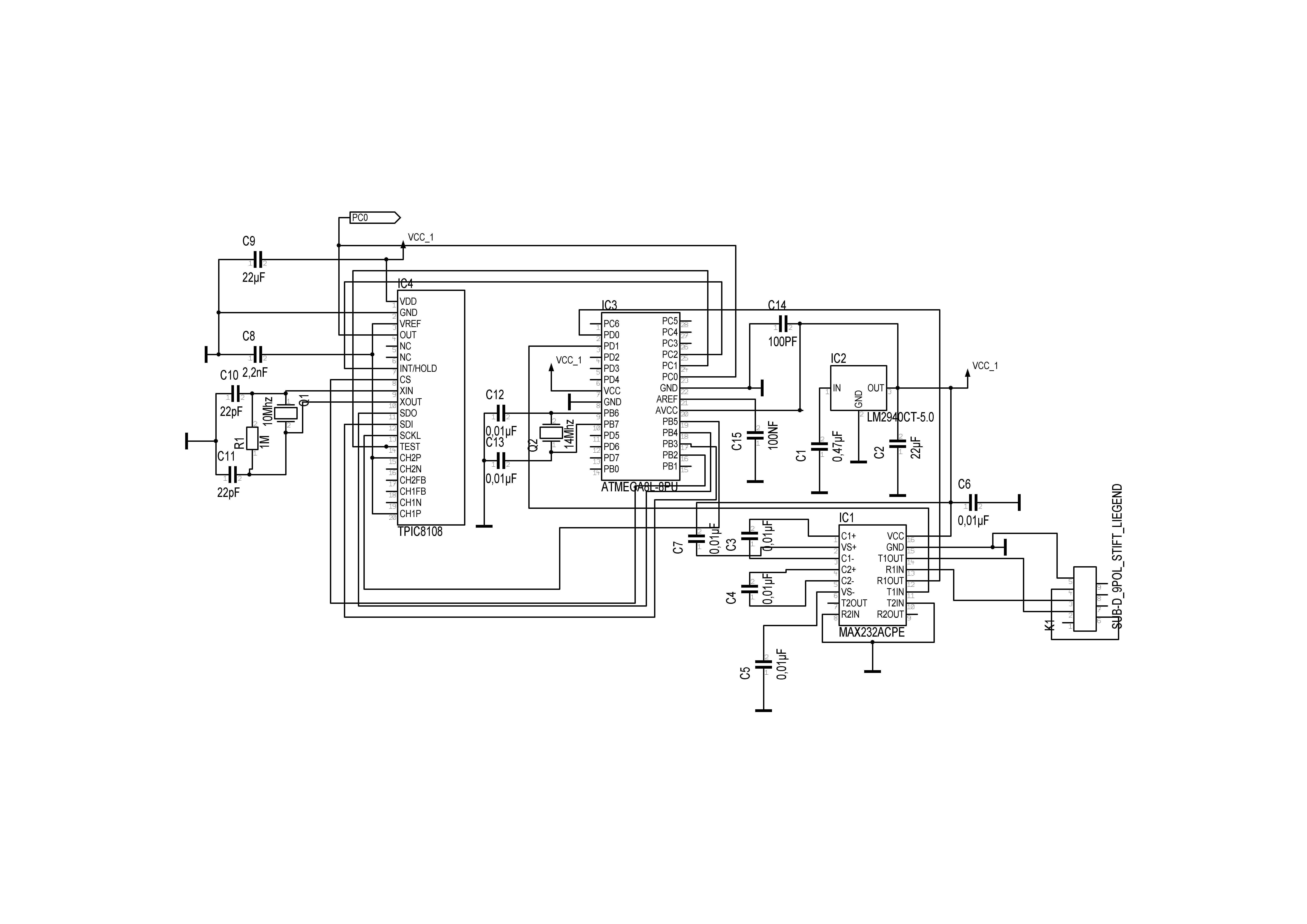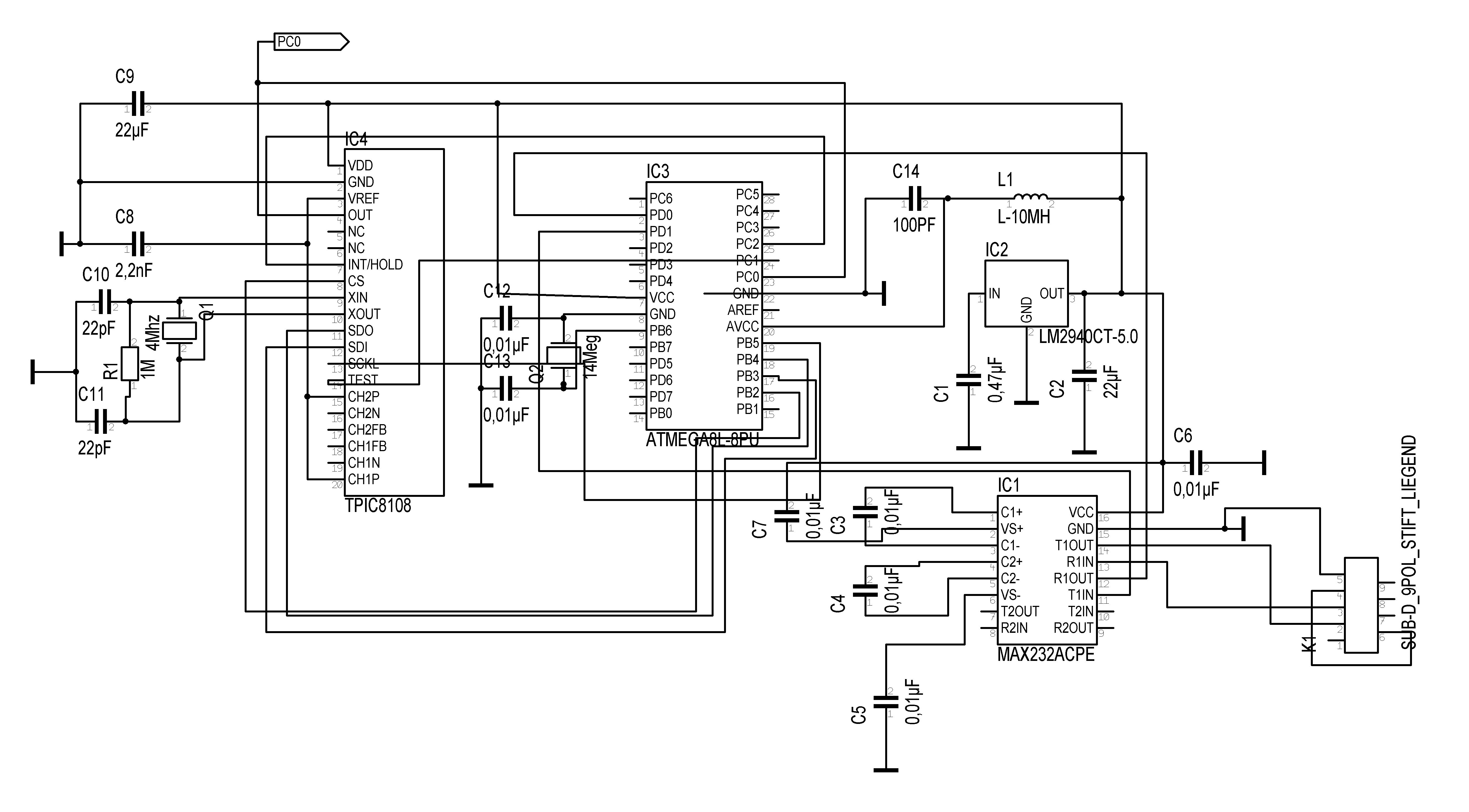 MAX232 setzt man die Pegel der Schnittstelle um, so dass ein PC mit