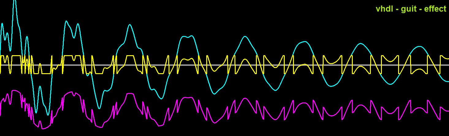 Es wird jetzt in absehbarer Zeit eine HW mit IOs geben: Beitrag "Re: Analog-Audio-Video-IO-board für FPGAs und MCUs" Das VHDL Effektgerät ist in Form des Harmonic-Moduls zur Manipulation der primären Wellen des Synthesemoduls integriert. Allerdings könnte man einen Kanal freiräumen, um einen externen Eingang mitzunehmen. Mal schauen.