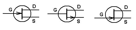 Sooo unsinnig ist das mittlere Bild wohl auch nicht, wenn man es als angezeigte Stromrichtung auffasst. (eben die eines N-Kanal-FET) Nur bringt es Verwirrung im Vergleich zum normgerechten Schaltbild. Die Norm nutzt das Pfeilsymbol bei J-FET's als Anzeige, welche Durchlassrichtung die Gate-Kanal-Sperrschicht hat, so wie links und rechts (auch in diesem Fall N-Kanal J-FET) Da ist wohl die Zeichnung eines NPN zum J-FET rüberdiffundiert