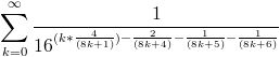 \frac{1}{16^{(k*\frac{4}{(8k+1)})-\frac{2}{(8k+4)}-\frac{1}{(8k+5)}-\fra