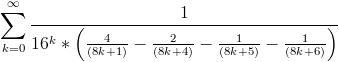 Summe k=0 bis Unendlich (1/16^k * (4/(8k+1) - 2/(8k+4) - 1/(8k+5) -