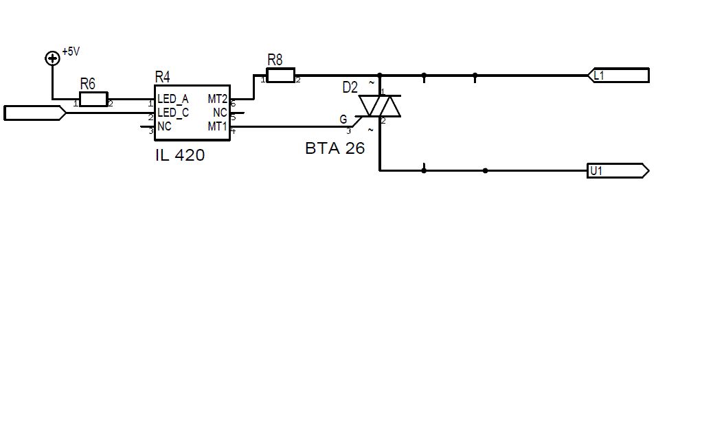 Hoppla, da habe ich etwas gepennt. Für die Bemessung von R8 spielen Vth,Imin Imax des BTA nur eine geringe Rolle. (Wenn mans so schön vorgerechnet bekommt, glaubt mans sofort) Der Zündvorgang über Optotriac ist ziemlich komplex: Für satte Zündung sollte R8 möglichst klein sein. Dann wird BTA schnell gezündet und an R8 liegt keine Spannung mehr an. Bei großem R8 wird die Zündung "lahm" erfolgen, weil erst spät der Zündstrom für BTA ereicht ist und in R8, dem 420 und dem BTA wird mehr Leistung verbraten als gut tut. Für MOC30Xx-Typen kenne ich Werte für R8 zwischen 330 Ohm und 1000 Ohm. Eigentlich sollte im Datenblatt des 420 ein Wert vorgeschlagen sein.