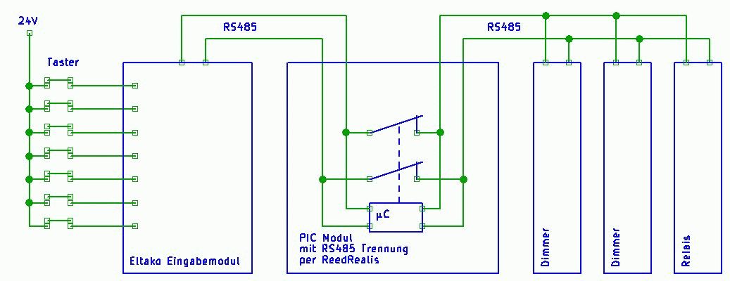 Hallo Zusammen. Ich habe jetzt etwas Zeit zum Experimentieren. Bestellt ist und wird wohl noch in dieser Woche eintreffen. Microchip PICDEM Can-Lin 2, einige Muster PIC18F46k80, MAX485 Eltako TFS12-EM-UC, FSR12-4x-12V DC und SNT12-230V/12VDC-2A Meine Lichtsteuerung werde ich Zentral mit dem Eltako Ferntastsystem ausführen. Einfach nur Experimentieren macht aus meiner Sicht nicht soviel Sinn und würde daher gerne die RS485 Steuerung für die Eltako Ferntastsystem erstellen. Die Funktelegramme von Eltako, Stand 8.8.2011, liegen vor. Neben den obigen Teilen werde ich voraussichtlich noch die Teile FSR12-12V, FMS12-12V und den FUD12NPN-12V einsetzen wollen. Welche Teile sollten noch unterstütz werden oder gibt es schon eine komplett Lösung? Grüße Hermann Frohe Weihnachten und ein gutes neues Jahr.
