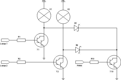 Falls Du mehr als 4 Birnen ansteuern willst, könntest Du einen PWM-Kanal nehmen, um alle Birnen vorzuglühen. (Ich habe die Schaltung nicht ausprobiert, aber so könnte es gehen.)