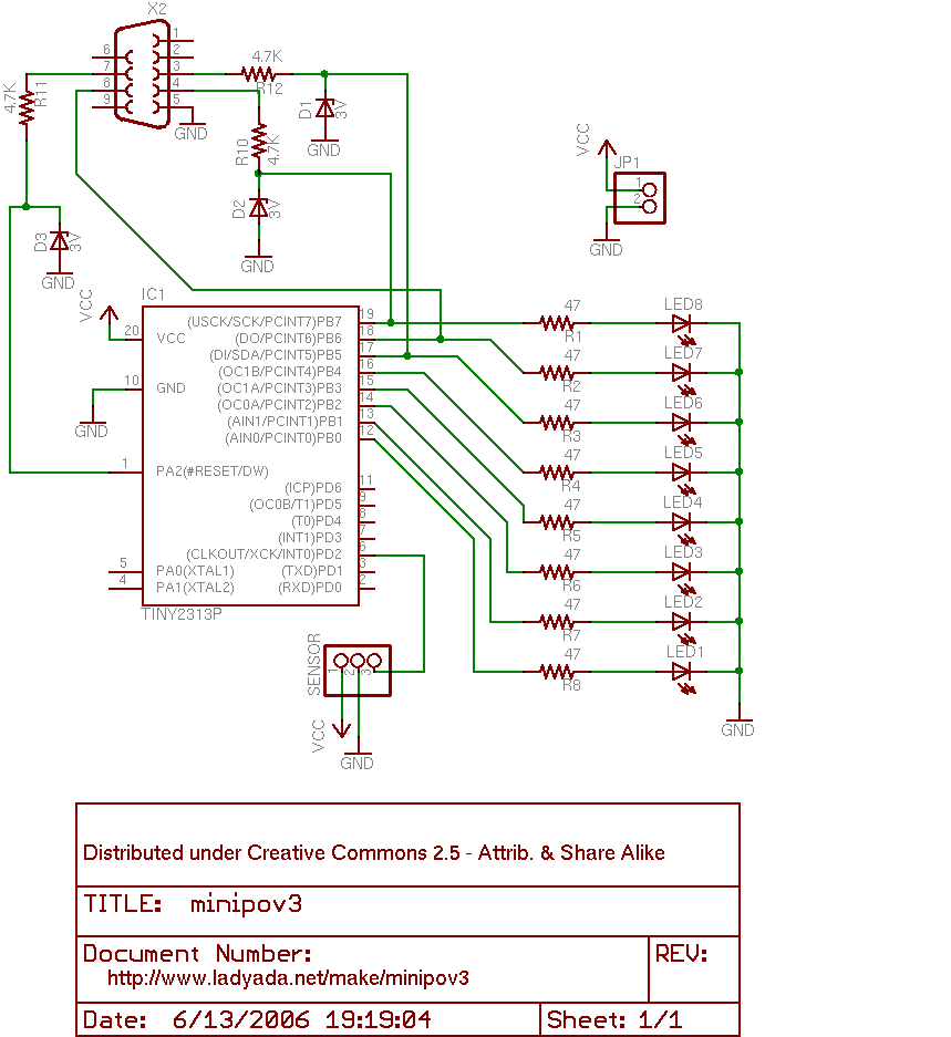 Hallo, bitte guckt mal folgenden Schaltplan an. ISP wird ueber den Serial-Port mit 10V realisiert. MOSI, RESET und SCK werden ueber Zener-Dioden auf ein ertraegliches Level gebracht. MISO aber nicht??! Ist das ein Fehler im Schaltplan?