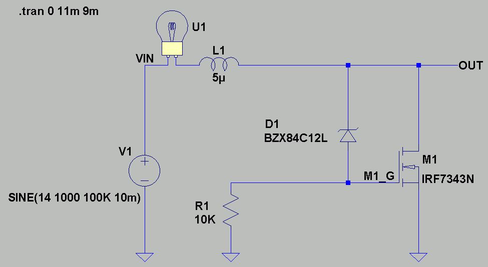 Es könnte sein, das die Probanden sich dann sowieso nackisch zeigen... Ich gebe zu, der IRL530 war ein eher schlechtes Beispiel. Der ist eher älter und für kleinere Leistungen gedacht. Nehmen wir eben einen anderen. Wobei sich die Frage nach dem günstigsten stellt. Wieviel vom Die hier nun thermisch überhaupt zum Tragen kommt, weiß ich nicht. Die "Verkabelung" intern ist wohl bei den normalen MOSFETs immer Aluminium obendrauf und drunter dotiertes Silizium. Die Rückseite ist Drain und großflächig an den Metallträger angeklebt. Dieser ist auch Drain. Mittelpin und Metallträger sind direkt ein Stück Metall. So zumindest bei TO220 und der kurzen Version TO262. Mittlerweile ist das Modell der Glühlampe ordentlich per curve-fitting aus einer realen Birne H4 12V 60W.