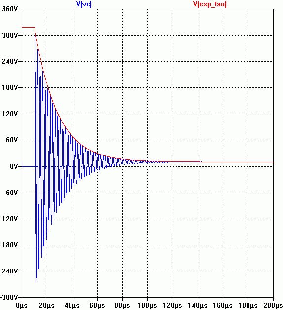 > Ich hatte überlegt anzunehmen, dass der Kondensator nach dem Impuls > geladen ist(was auch ganz sicher der Fall ist) und das als Randbedingung > in die entsprechenden Differenzialgleichungen einzusetzen Ja genau, das ist schon der richtige Ansatz. Du brauchst als Anfangsbedingung die Kondensatorspannung und den Spulenstrom, sinvoll wäre z.B. mit Spulenstrom = 0 und einer bestimmten Kondensatorspannung (ungleich 0) als Startwert zu rechnen.