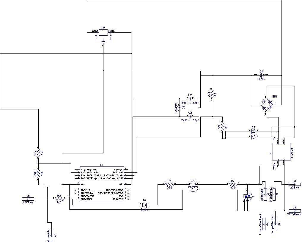 Ich hoffe mal das der Schaltungaufbau nicht so aussieht wie der Schaltplan. Auch sehe ich keine Enstoerbauteile fuer den Triac. Jeder Peak bringt deine Nulldurchgangserkennung ausser Tritt.