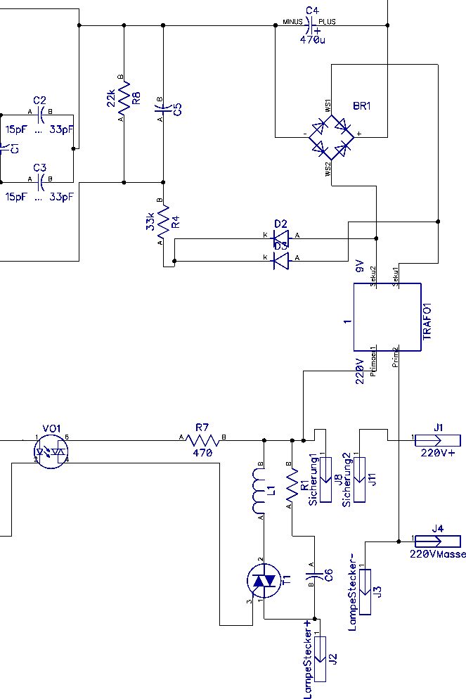 Helmut Lenzen schrieb: > In reihe zum Triac eine Entstoerdrossel parallel dazu einen Snubber. > An deiner Nulldurchsgangserkennung (R4 , R8) ein kleines C um > Stoerspitzen abzufangen. Welche Werte sollten L1, C6, R1 und C5 haben?