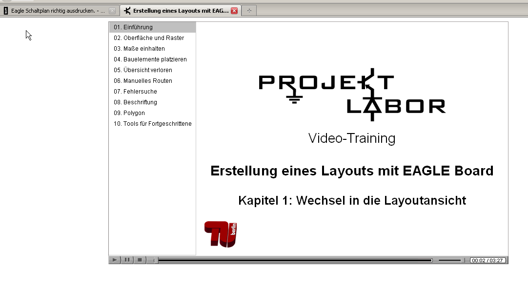 Geh mal hierhin: http://projektlabor.ee.tu-berlin.de/onlinekurs/eagleboard/ Das ist außerordentlich nahrhaft und leicht bekömmlich. ;-) MfG Paul