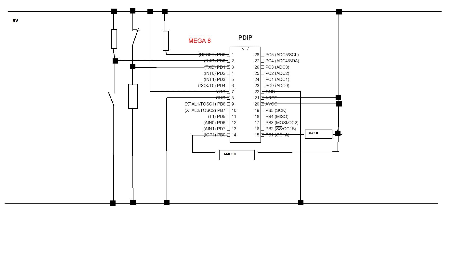 Ok hab mich vielleicht schlecht ausgedrückt, aber wie sollte es denn aussehen, wenn ich mit einem Schalter eine LED einschalten will. Wenn ich denn los lasse bleibt die LED an und wenn ich einen zweiter Taster drücke geht sie wieder aus. Bitte um einen Tipp. Worauf muss bei der Verdrahtung geachtet werden, wie in Assembler aussehen?