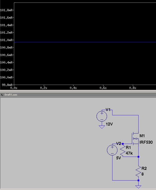 Hi, mein Problem ist folgendes: Der Transistor (N-Channel MOSFET ST IRF530) schaltet nicht (nicht wirklich, nur 100mA) bei 5V Gatespannung wenn eine Lampe an Source hängt (auf dem Schaltplan als Widerstand). Sobald ich aber die Lampe vor Drain anschließe funktioniert es. Warum? Schon mal Danke im Voraus ! Corn PS: Der Strom auf dem Graph ist Id ;-)