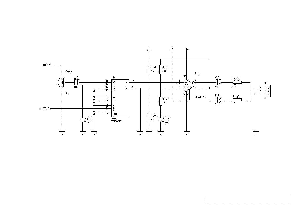 Hallo ihr alle! Mein letztes Projekt funktioniert zwar so wie es sollte , jedoch rauscht der Ausgang (baut sich irgendwie auf!) und beim Einstecken des XLR-Steckers knackst es. Vielleicht hab ich einen Denkfehler in meinem Design? Oder vielleicht liegt es auch nur am Prototypenboardaufbau? dds.jpg: Ad9833 geht in jeweils eine Bufferstufe für einen Komparator der als Nulldurchgangsdetektor gilt und einen Buffer in das nächste Sheet: out.jpg: Symmetrische Ausgangsstufe mit Muteschaltung auf Basis eines analogen Multiplexers , der Poti stellt mir die Lautstärke ein. Hat jemand einen Verbesserungsvorschlag? fg markus