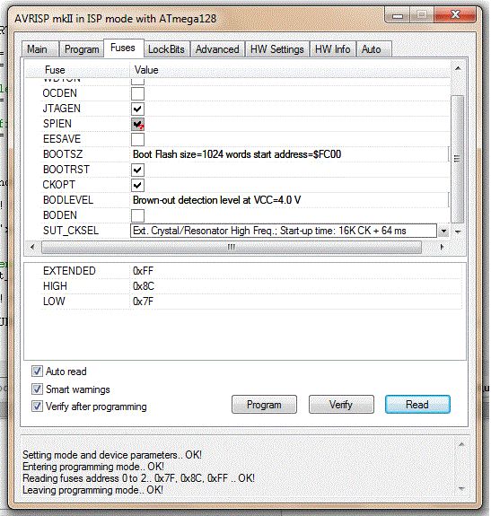 Nun hab ich in dem Forum gelesen, dass beim ATMega128 der ATmega103