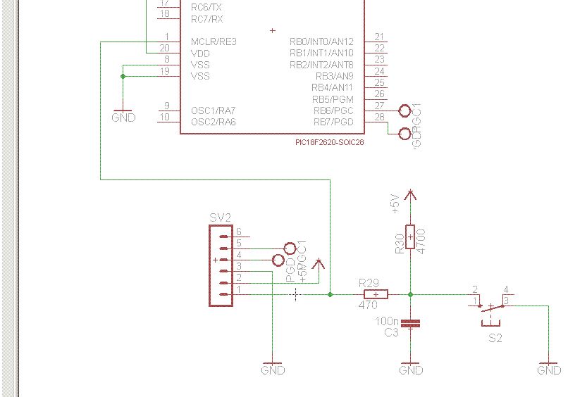 Es könnte sein dass die RC Kombination am MCLR stört, vielleicht mal versuchsweise den R29 ausbauen. Die ID 00000000 bekommt man auch, wenn die Takt- oder Datenleitung unterbrochen ist oder beide miteinander vertauscht sind.
