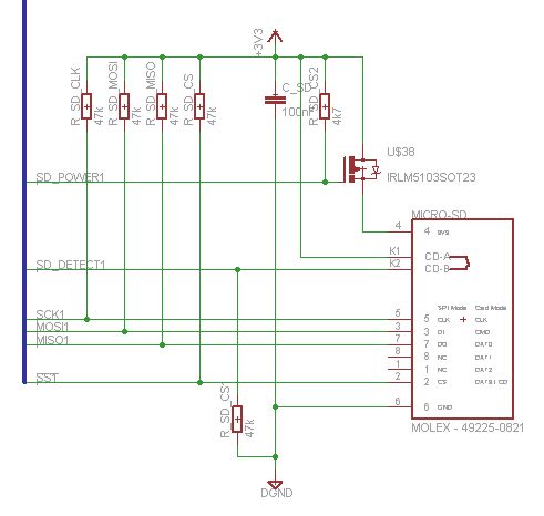 Möchte eine Micro-SD Karte an einen AVR anschliessen. Der eigentliche Anschluss ist ja kein Problem aber die Feinheiten (Pullups usw.) Habe hier mal einen Entwurf gemacht. Die Schaltung enthällt eine Card-Detection, Software-Reset (SD Supply schaltbar vom AVR) und ne SPI-Anschaltung mit Pullups auf allen Leitungen. Ist das so richtig?