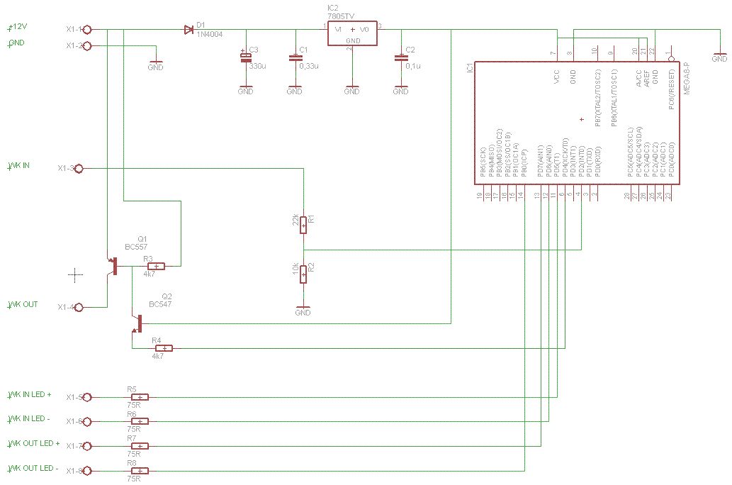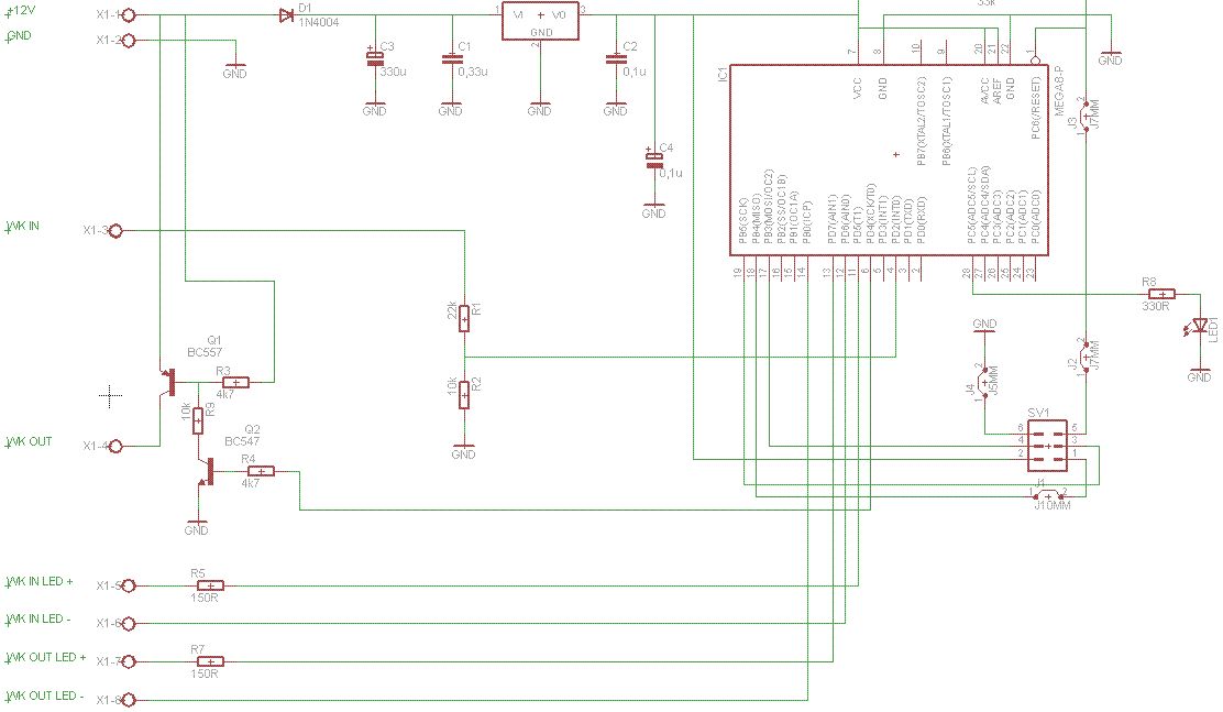 Hallo zusammen, ich möchte gerne den Ausgang "WK OUT" über einen PNP Transistor mit +12V verbinden. (Sobald an "WK IN" 12 Volt anliegen). Gesteuert wird dann "WK OUT" über den uC-PIN "PD4". Funktioniert meine Schaltung so? Danke! Christian