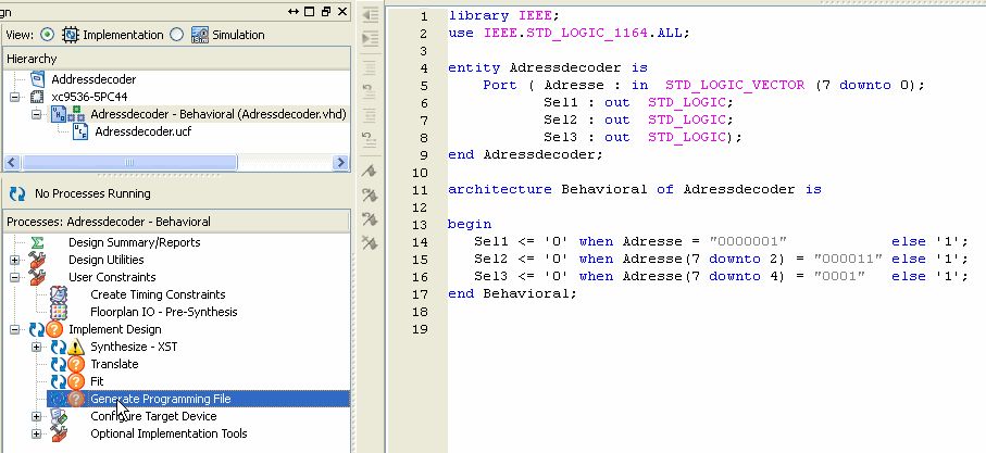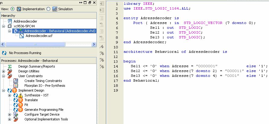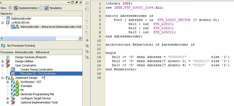 Oh Gott .. ich hab das XILINX Webpack installiert (mit Lizenzfile) und bin vollkommen überfordert :-(.. mit dem bissl Englisch was ich kann...komm ich nicht weiter.. Kann mir jemand mal kurz die Schritte erklären, wie ich z.b. mit dem XC9536 einen einfachen Adressdecoder (4bit) erstellen kann ? und dann auch die Datei für den Brenner ? Das wäre echt nett von Euch..! Dankeschön schonmal !