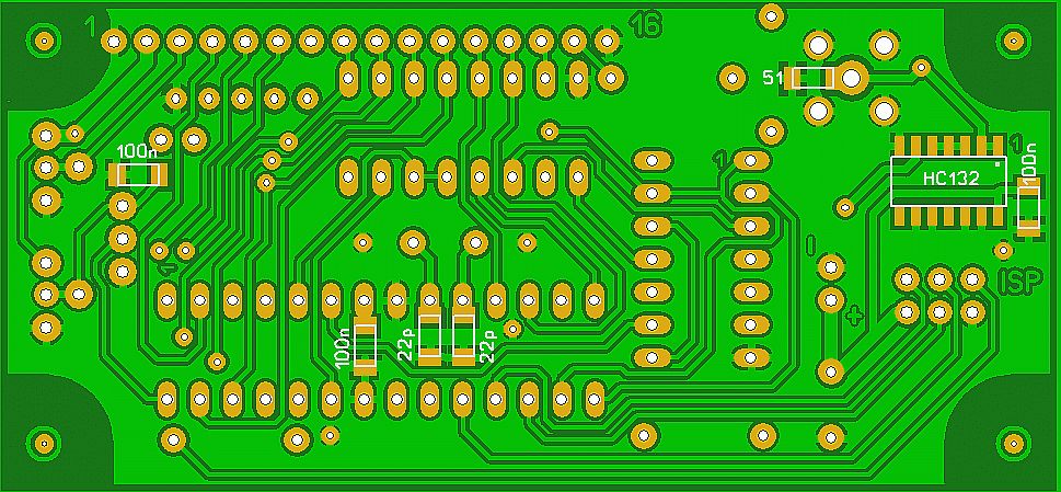 den µC einlöten und auch die wenigen Leiterbahnen oben anschließen.