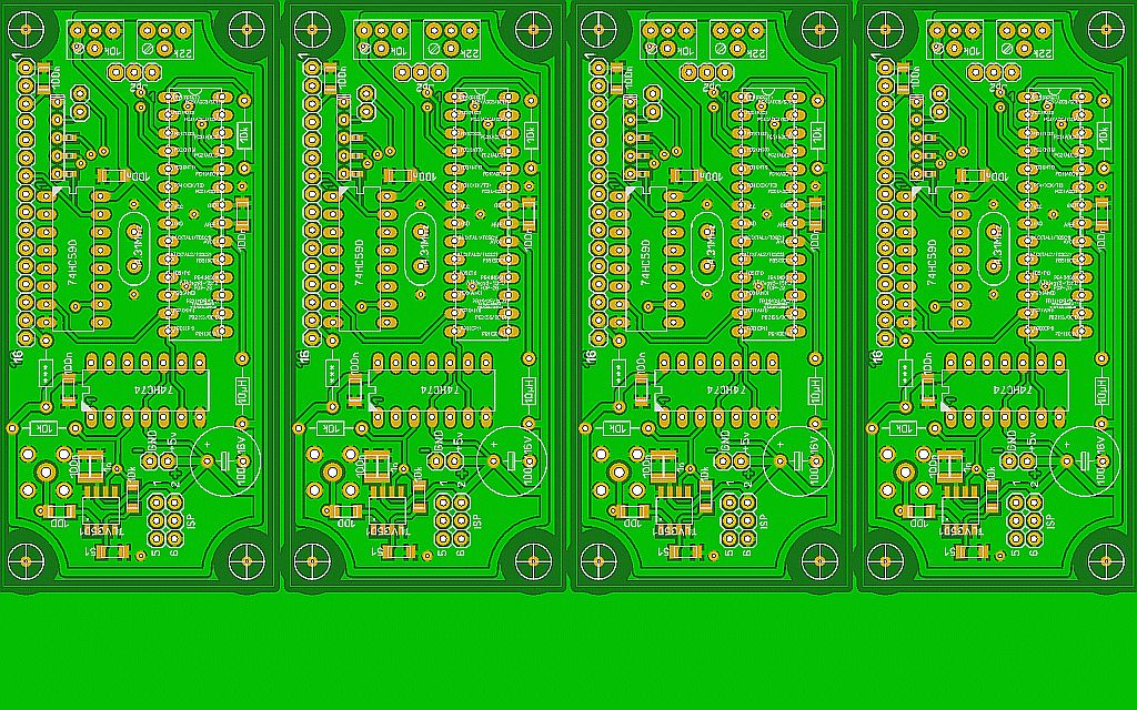 Hardware steckt drin: 1xATmega8, 1x74HC74, 1x74HC590, LCD 10x1.