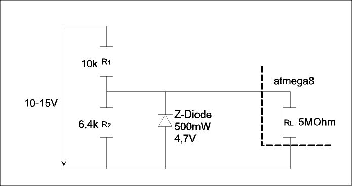 hallo dannyNRW... ich arbeite auch oft mit µC im KFZ-Bereich... ich mach das gaaaaaanz simple... 1N4148 Diode in Durchlassrichtung an einem 7805 Regler und dann in den µC-Eingang rein...ist klasse gegen Spitzen, verpolung und und und geschützt... Bei mir laufen Schaltungen damit schon seit mehreren Jahren einwandfrei... LG Giuseppe