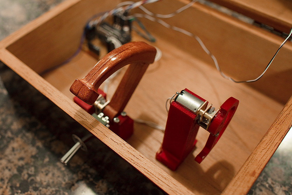 ich würde einfach ein wenig Pappe oder Hartfaserplatte zurechtschneiden. für den Antrieb würde ich ein Lock bohren/stechen und dann ein kleines Zahnrad mit der richtigen Lochgröße drauf/rein-kleben Und dann falls notwendig lackieren. Edit: Man könnte den Arm der "most useless machine" aber auch so gestalten, dass der extra Klappenöffner nicht benötigt wird.